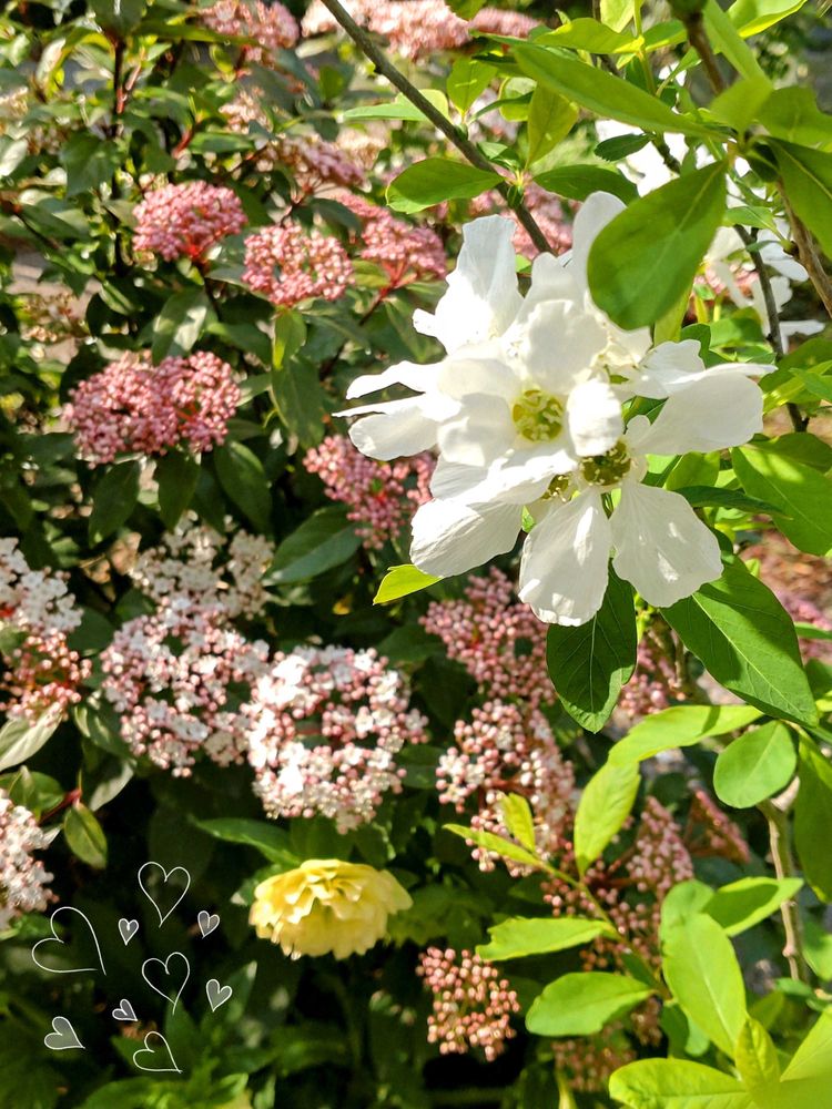 ビバーナムの開花が始まり…ちょうど咲いていたクリローや利休梅とのコラボ撮影に四苦八苦💦ひとつにまとめるテクニックがないけど…記録用として🤭💕春が来た🎶ようです💞