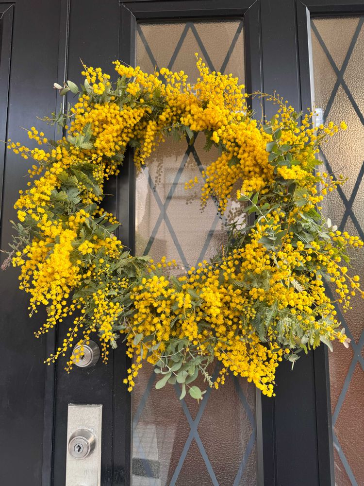 初めて作ったのでこんなもんかな?とちょっと形が歪になってしまった💦と言うか、リースの大きさをもう少し小さくすれば良かったです〜😁