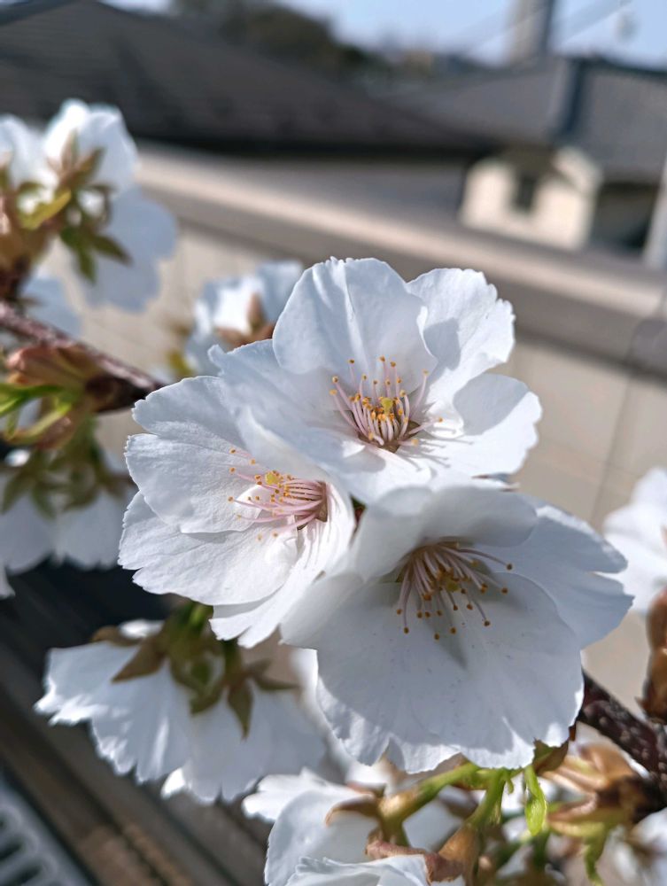 久米島と沖縄の北部にしかない幻の桜であるクメノサクラが満開になりました。ほんのり高貴な香りを漂わせ咲き始めは純白ですが咲き進むと淡いピンク色に変化します。久米島から1950年代に沖縄北部に持ち込まれ種の発芽率が悪いので寒緋桜に接ぎ木して増やしているそうでただいま本部町伊豆味区にてクメノサクラ祭りが行われているそうです。当方がどうしても花を見たくなり去年の1月中旬頃に沖縄から寒緋桜の台木とクメノサクラの穂木を頼み接ぎ木したら成功して咲き始めました。ちなみに本土では所持している所がなく植物園でも知らないのでもしかしたら本土では初開花になるかも知れませんね。そして久米島では古い文献に見られ支配階級が庭などに植えていたそうで一時は久米島の固有種ではないかと言われていたそうですがその後に大航海時代に中国から渡来したのでは?と言われているそうですが真相は謎らしいですね。それと最近のDNA鑑定の結果ツクシザクラに近縁である事がわかっています!