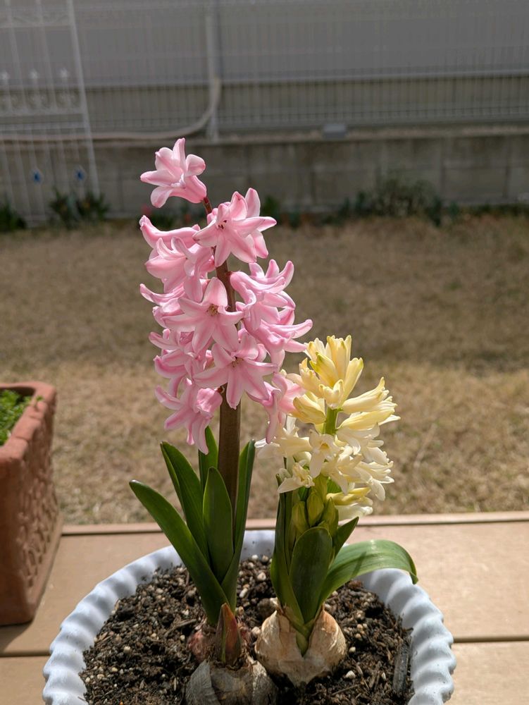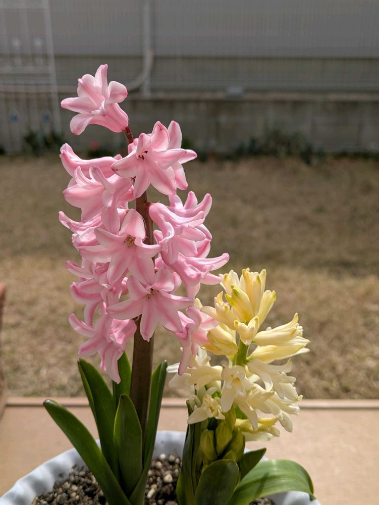 1、2枚目のヒヤシンスは今年芽出し球根を買って植えたものです