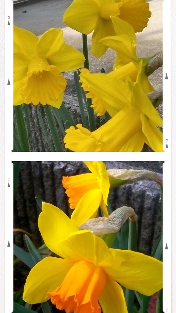 ①家の庭では ラッパスイセンが咲き出しましたが バラバラの向きで咲いています😅