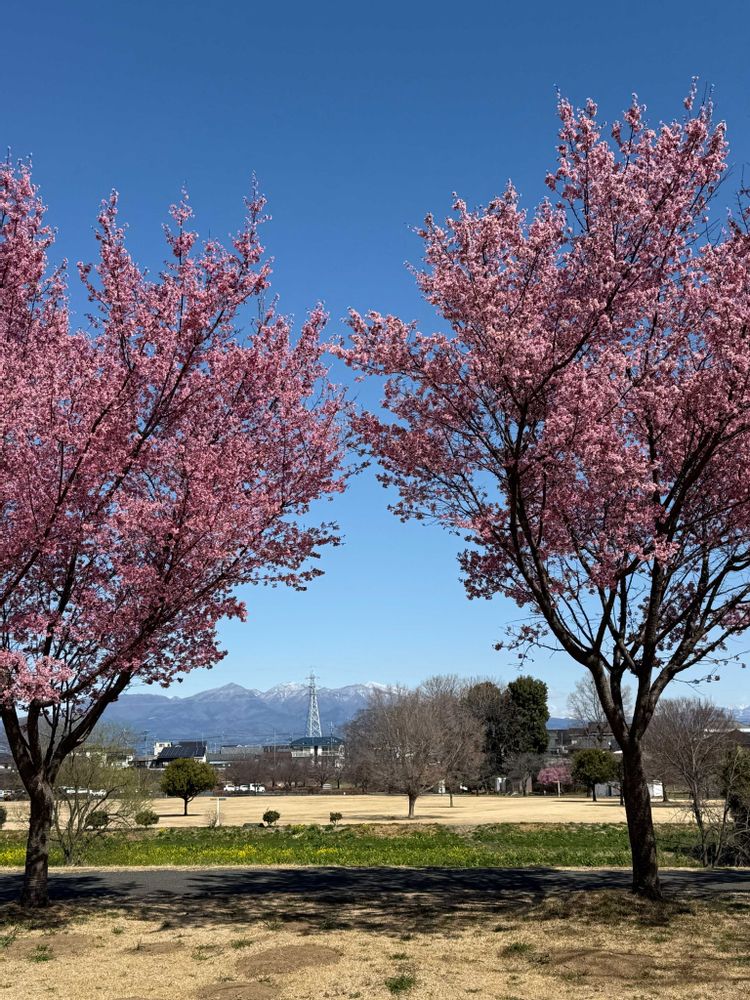 伊勢崎西部公園のオカメザクラが満開を迎えていました。😊👍🎶📸