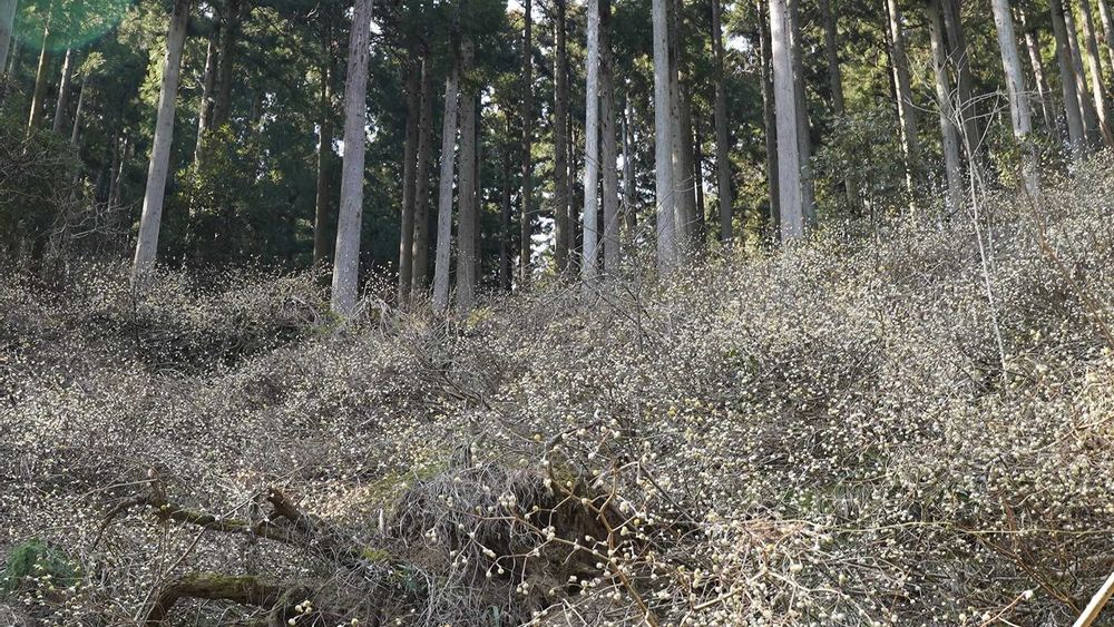 高畑山のミツマタ群生地、ほとんどがまだ蕾で開花にはもう少し時間がかかるようです。
