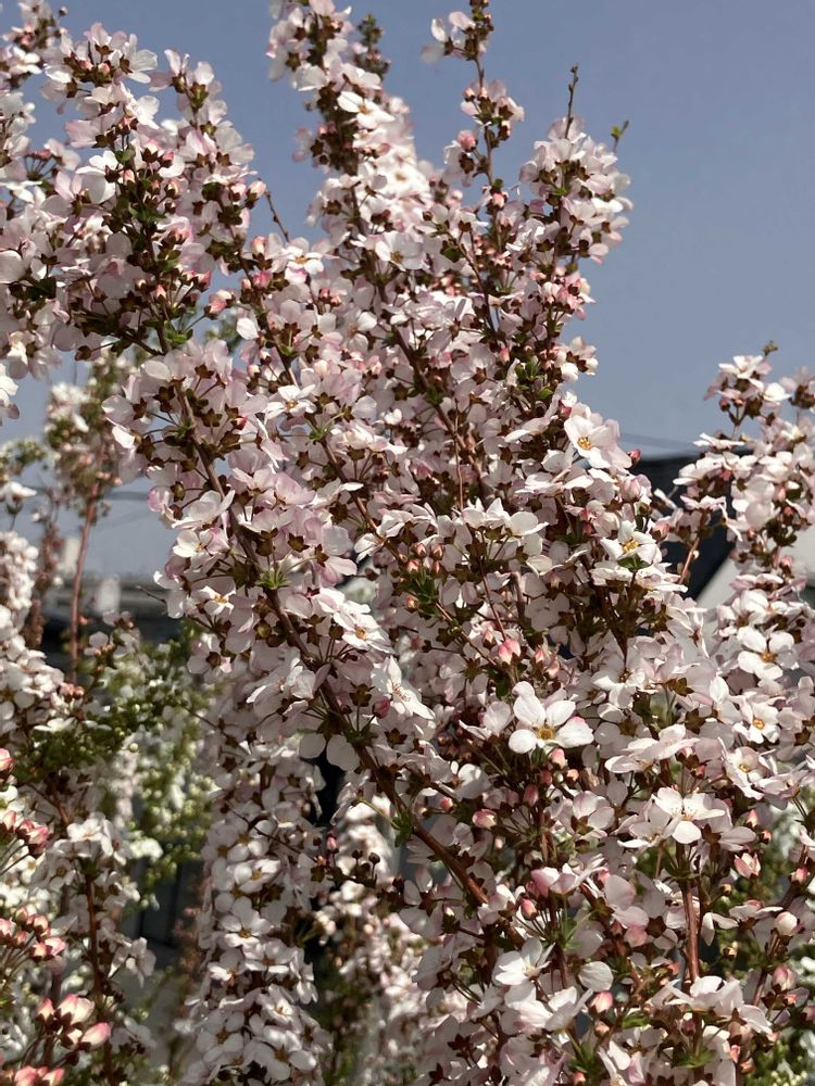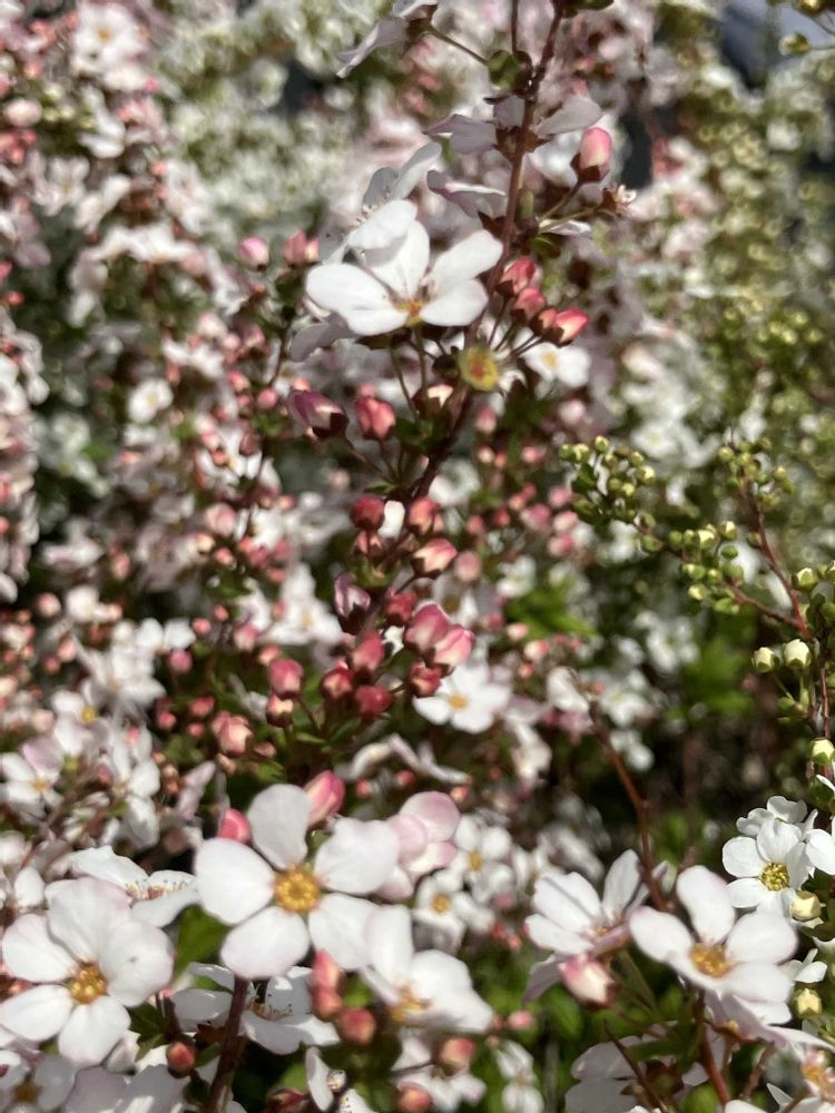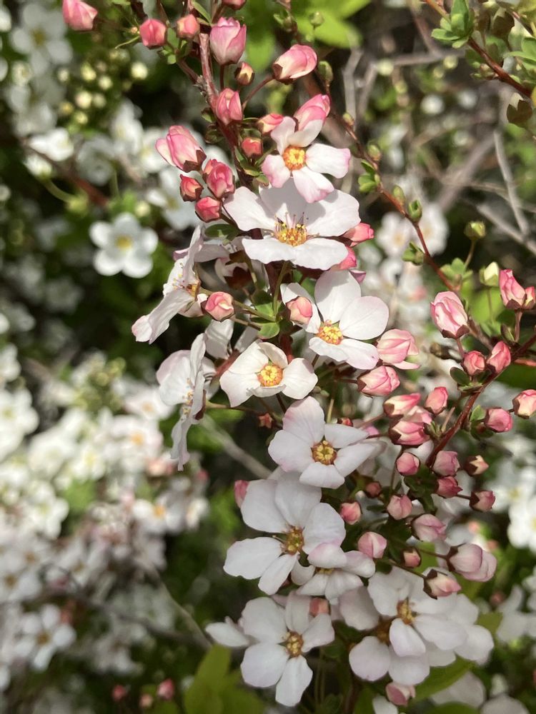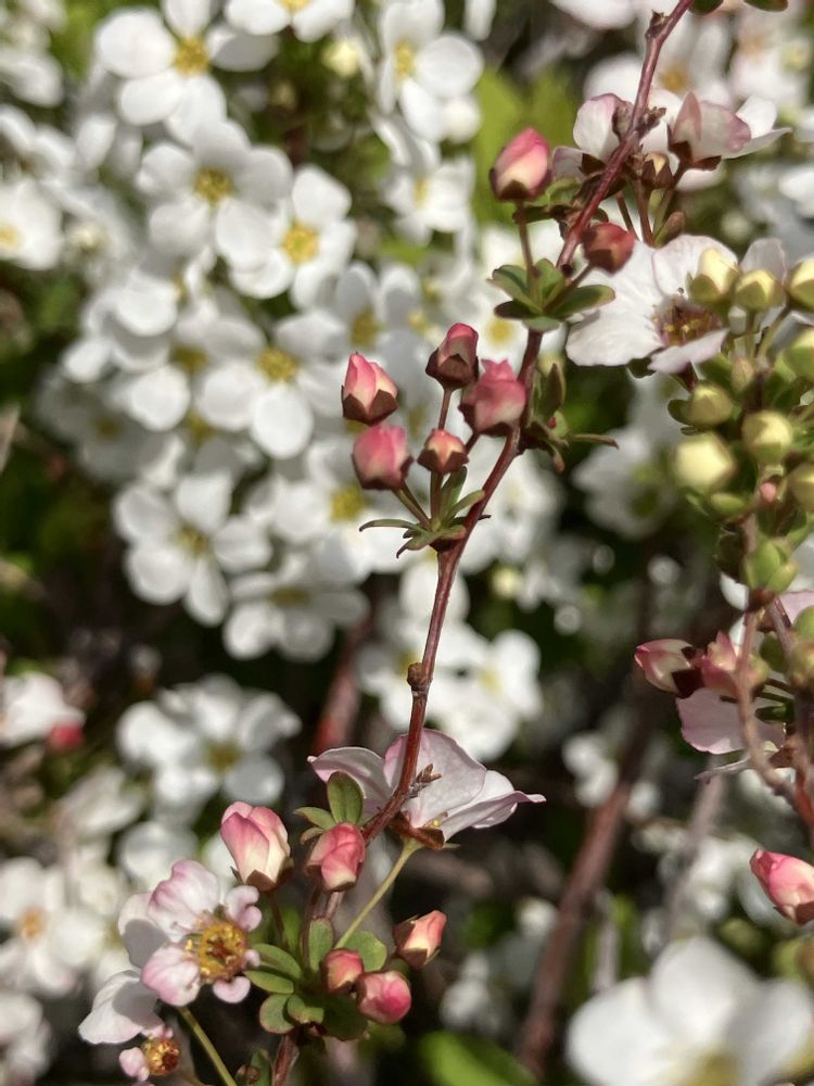 白いユキヤナギに混じってピンクのユキヤナギがあったんですよ