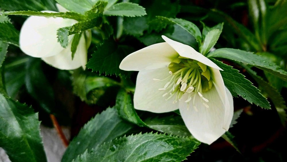 ピンク色八重咲きのクリスマスローズに遅れること3週間の開花です。