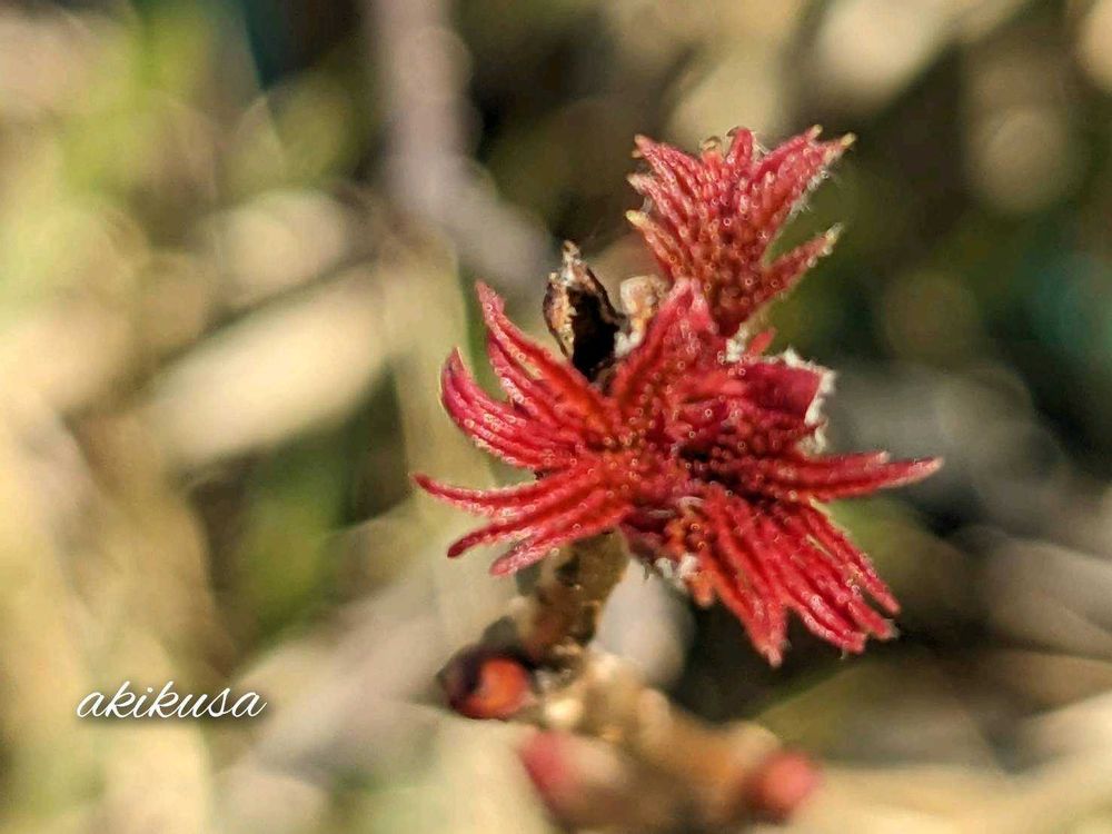 新芽が燃えるように真っ赤です