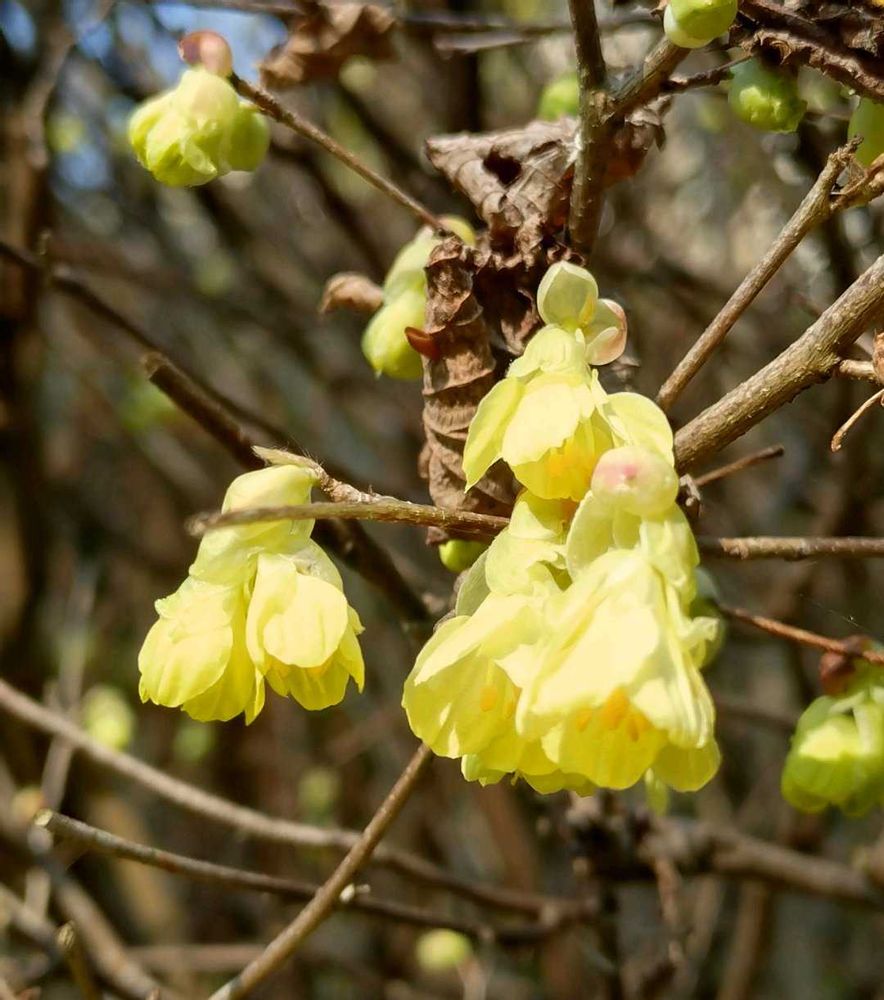 マンサク科トサミズキ属の落葉低木。山地に自生し、庭や公園にも植えられる。江戸時代中頃から園芸植物として鑑賞されていた。土佐水木(トサミズキ)に似るが、葉も花も全てにおいてトサミズキを小さくしたタイプ。花期は3~4月。花は葉が出る前に咲く。2~3個の花が穂状に垂れ下がるので、花穂は短く1.5㎝ほど。5花弁で、雄しべは花弁より短いので、黄色の葯が外に出ない。質の薄い葉は長さ2~3㎝と小さく、葉脈が目立つ。