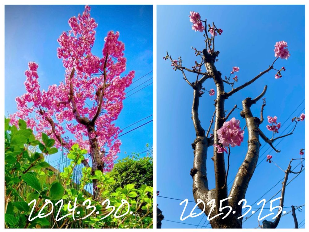 我が家の小さなお庭の「陽光桜」…昨年と今年の結果…「桜切る馬鹿…」でした🤗🥲