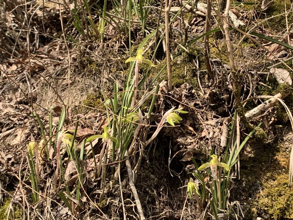 お山のパトロール😀今日のお花春蘭です😀これはたびたびアップしている株で鹿🦌に葉先を食べられている株😓黄色味があってべっぴんさんです😊