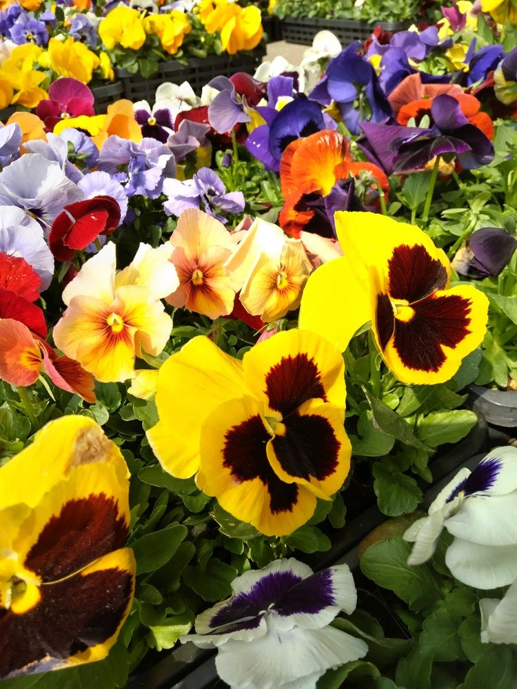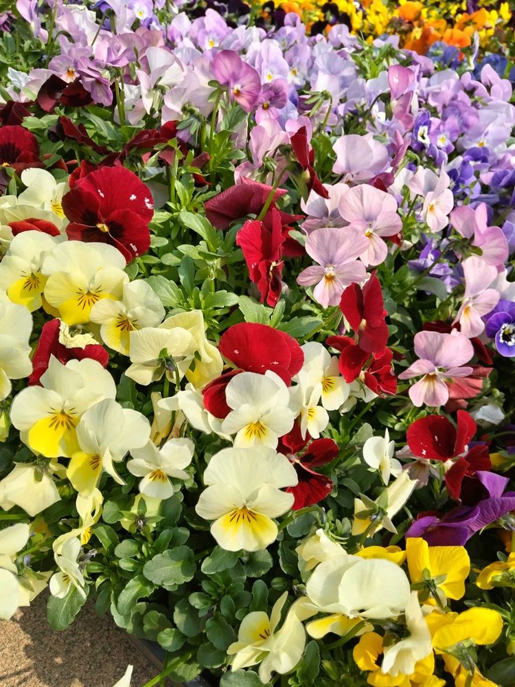 🌼🌸お出かけ先の園芸店に、ケース毎で売られていたパンジー、ビオラ。