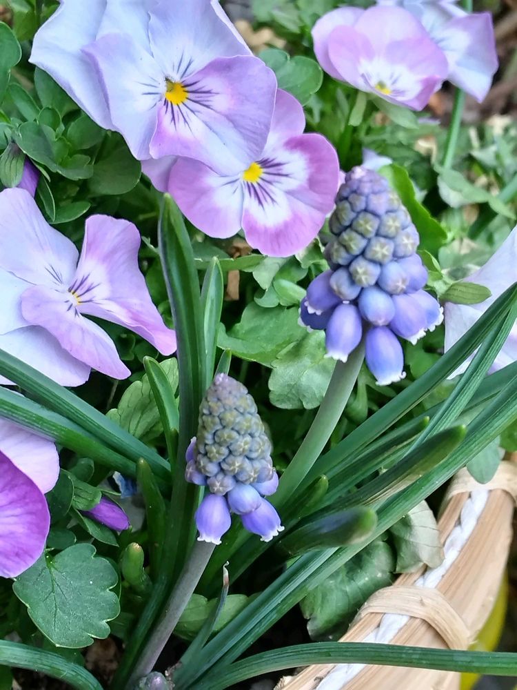 お出かけ先,ムスカリ,パンジーの投稿画像