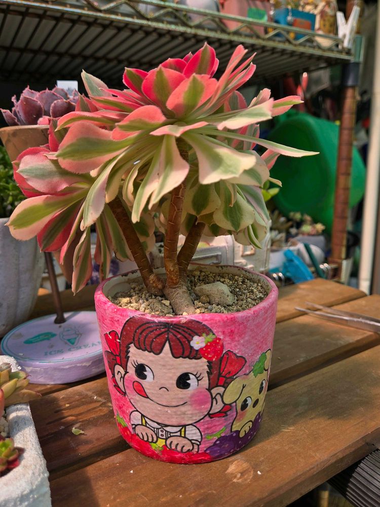 いちごみるくちゃん作ペコちゃん鉢にロイドさんから頂いたピンクウィッチさん🥰