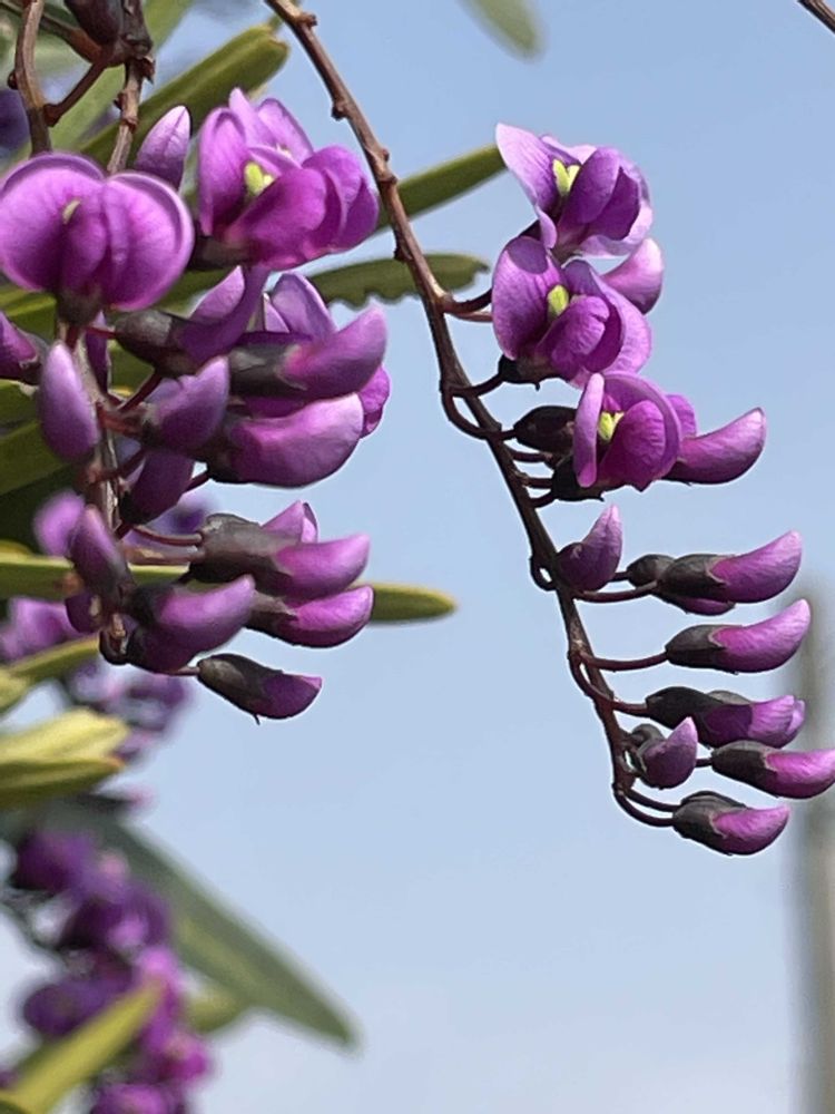 3/14に固い蕾で見て頂いたハーデンベルギアが咲き出しました🤍💜𓂃🌿𓈒𓏸