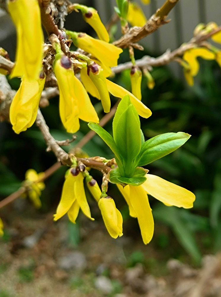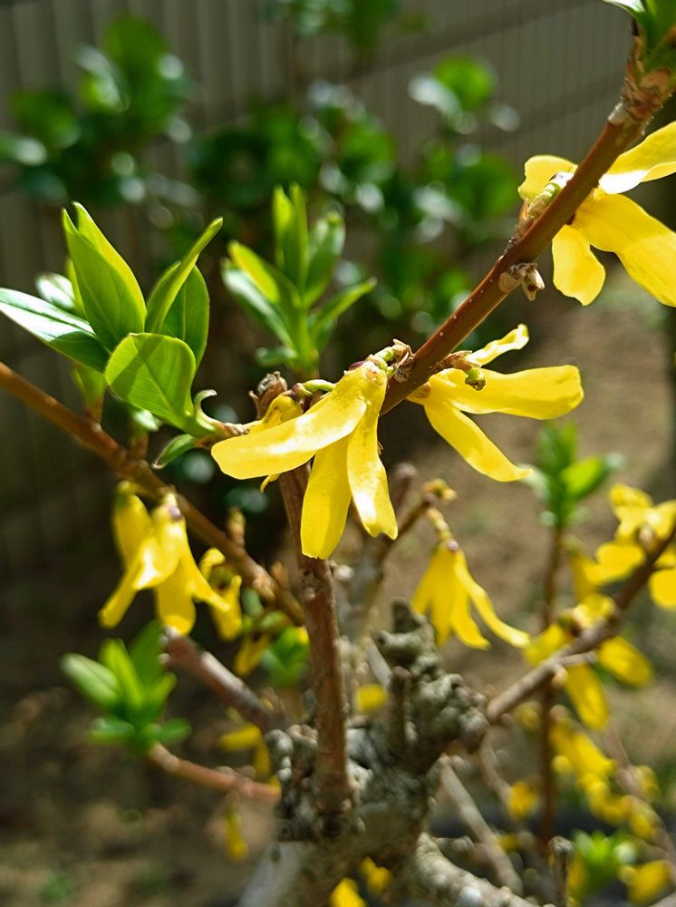 小さな庭,レンギョウ,下を向いて咲くお花シリーズ♪の投稿画像