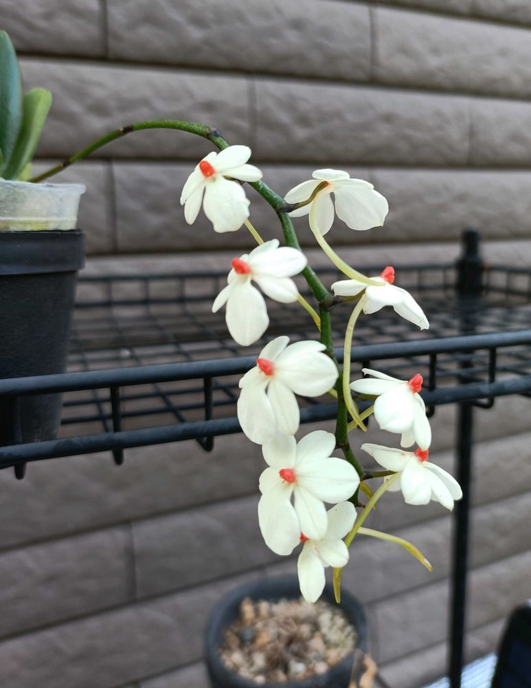 今日あったかかったから、風が好きなのにずっと風を感じさせてあげられなかったリンコスティリスをベランダへ。