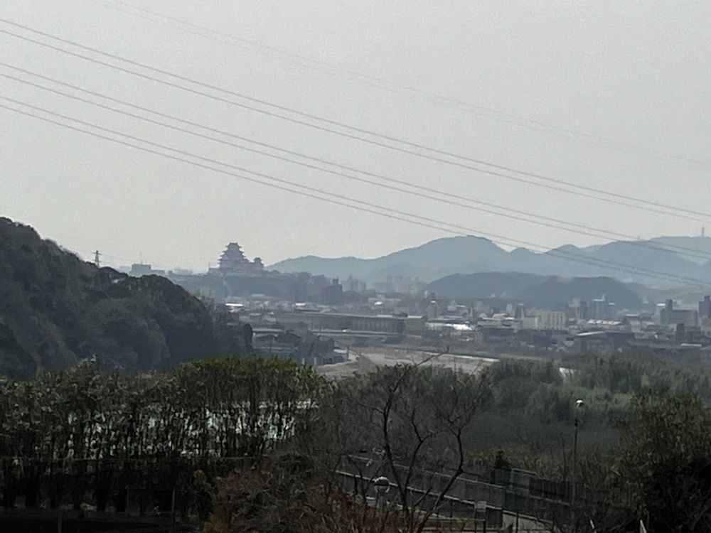 2025年3月25日(火)15時、春霞(黄砂=PM2.5)の姫路城by城見台