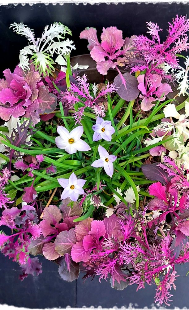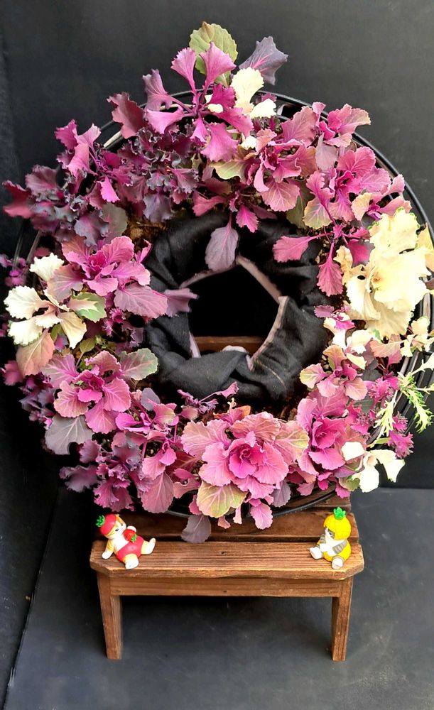①枚目…種蒔き~6ヶ月経ちました🙆「ミニ葉牡丹リース」です💜🩷🤍💚