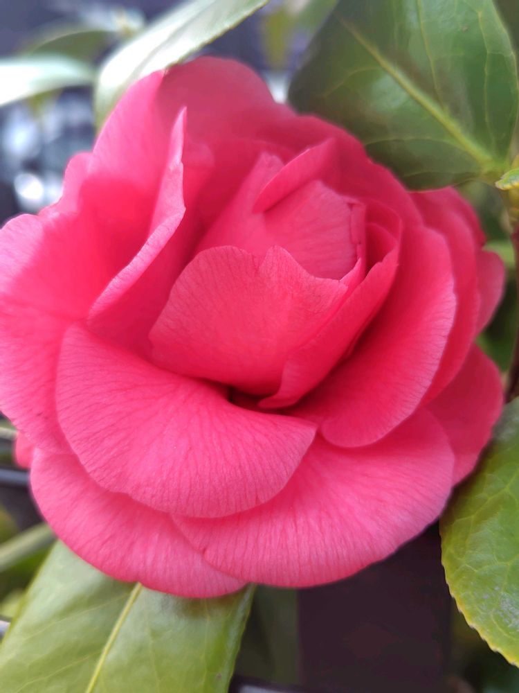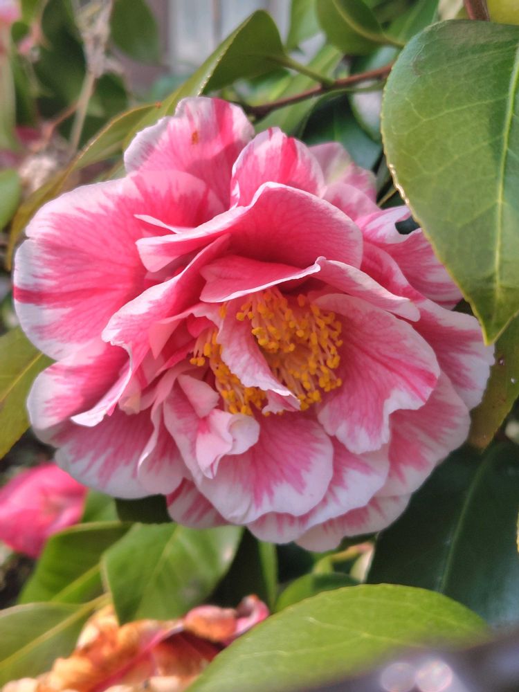 斑入り?の八重咲きツバキ、大輪でとてもキレイ🩷♥