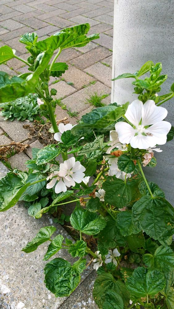 歩道に健気に生きるマルバアオイの花を初めて今日出会いました。