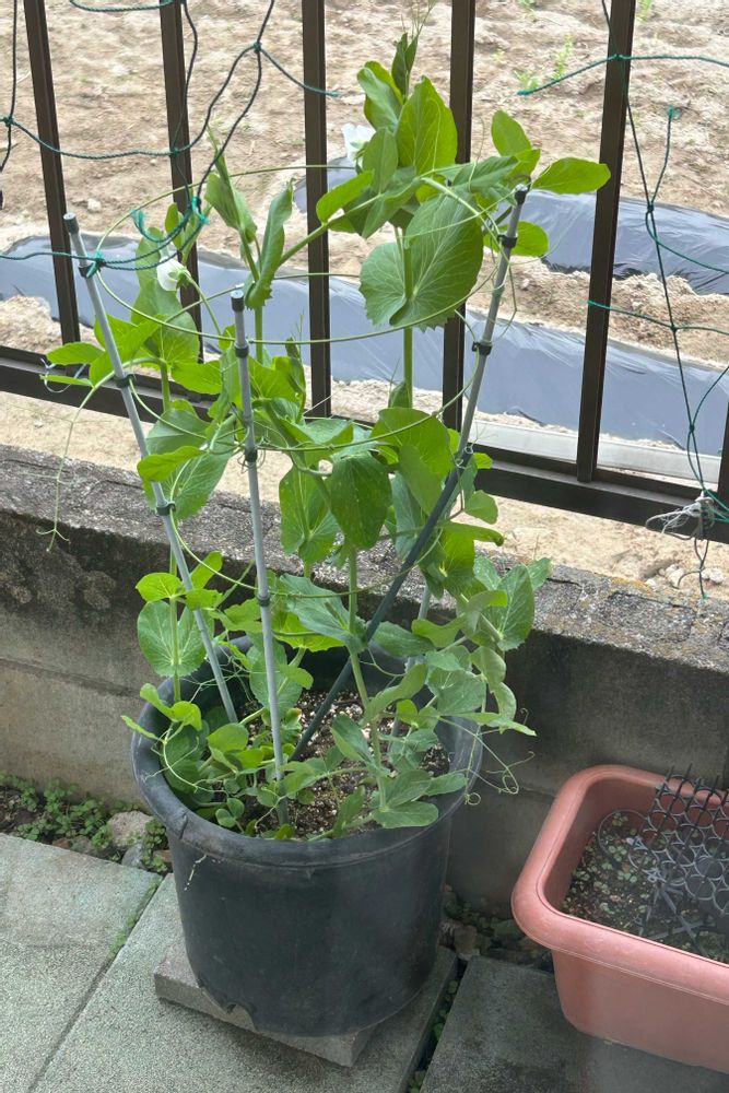 12月から育ててるスナップエンドウ花が3輪付きました。ちゃんと育つかな?去年のカメムシの多さ雪の日にも居た😵
