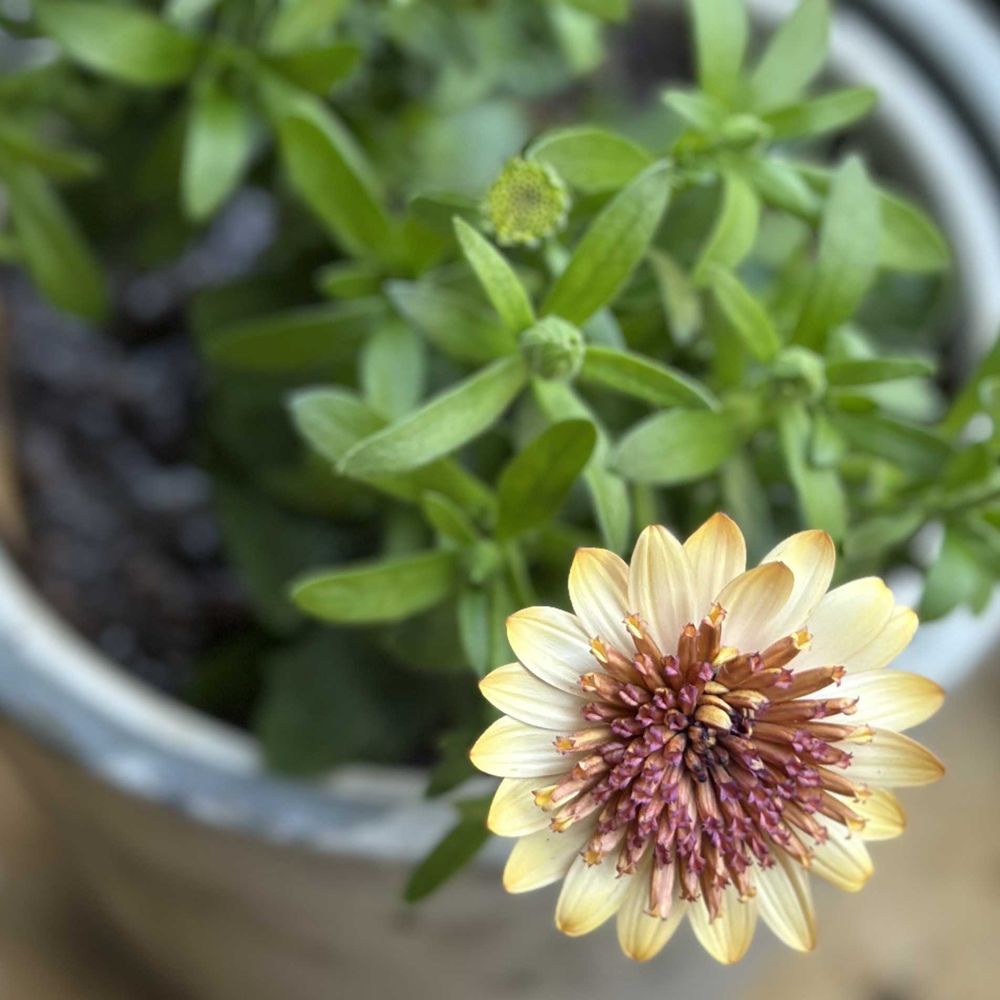 3枚目はオステのモカラテ。一月に、開花しているものより蕾がたくさんついた株をお迎えしました。2ヶ月待ちくだびれました。こんなことなら一輪でも咲いてるのを買えばよかった…😹