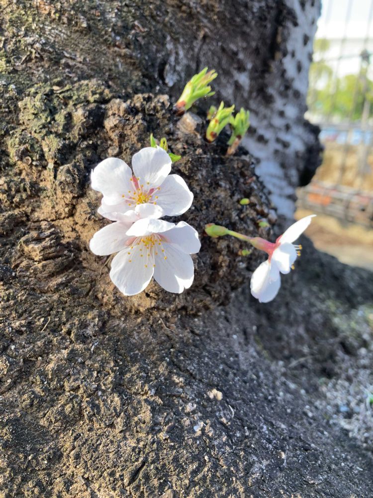 株元の低い位置で咲いている桜が可愛いです🌸😊🌸
