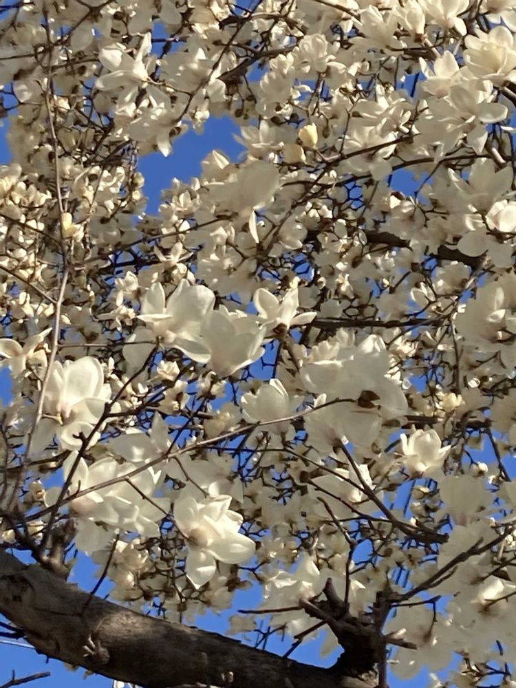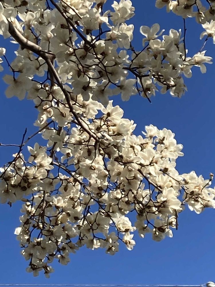 青空の下で、たくさんの白木蓮🤍🤍🤍が綺麗ですね〜👏