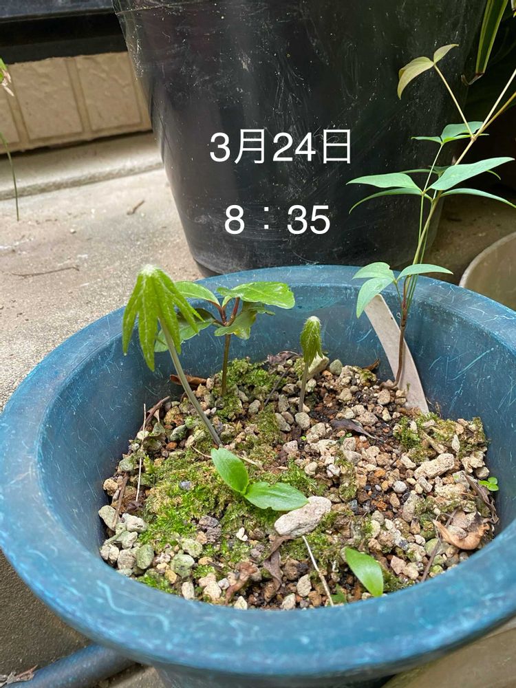 未だ小さい芽を発見して鉢の置き場所 室内から見える所に変えました。