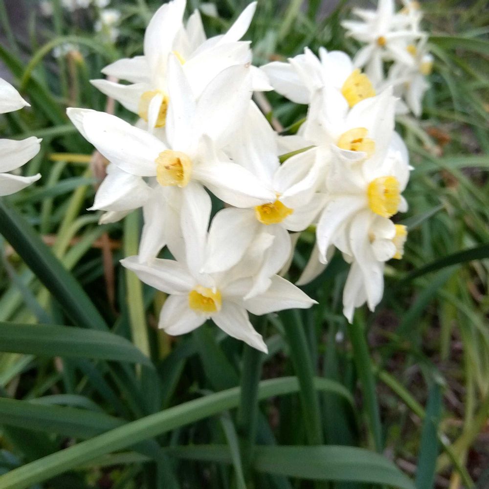 お隣の畑で咲いている白い水仙たち🤍🤍🤍