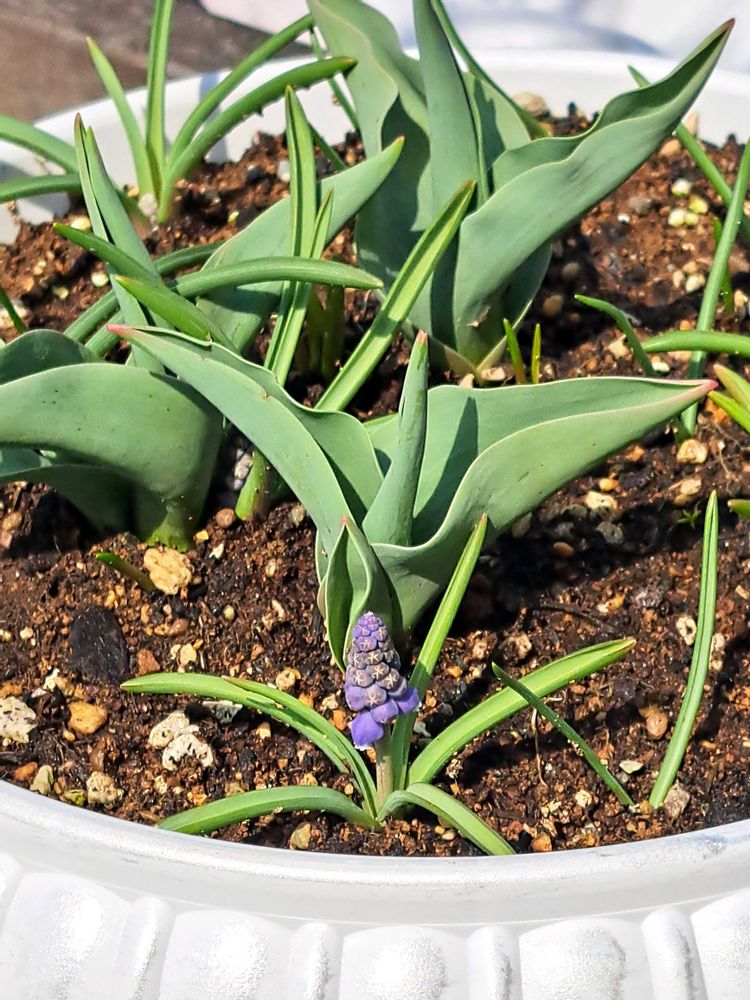 よく見ると、ムスカリ🪻は花芽があって、小さな庭に春がやって来ました。