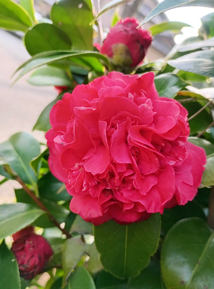 どなたかが植えたのでしょうね。表側には、クシュクシュ❤️の唐子咲きの椿 (荒獅子or南蛮紅) もまだ咲いているのが見られてHappyヽ(^。^)ノ