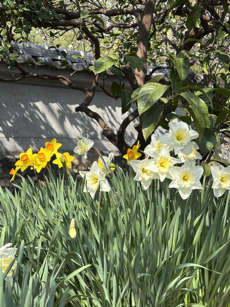 水仙がまた後ろの木や瓦塀も相まって、なんて素敵な雰囲気😊✨