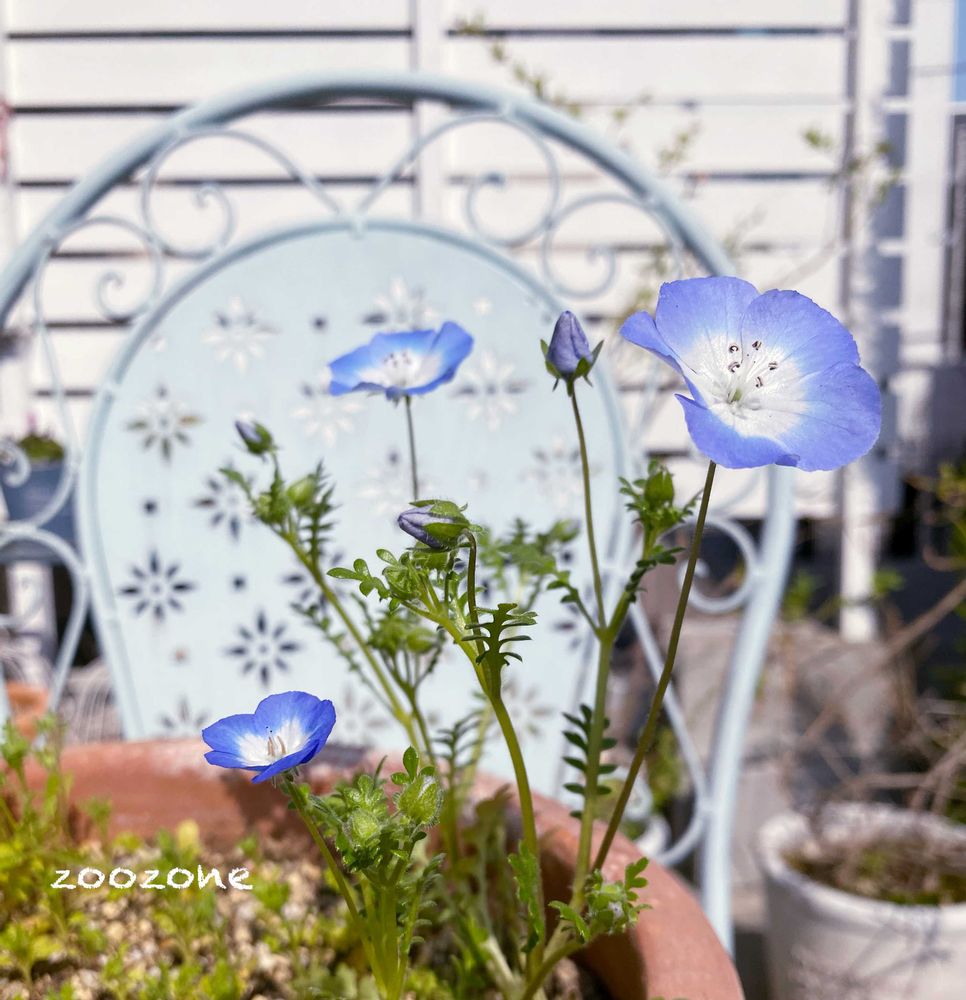 ①零れ種からの冬越し成功したネモフィラさん、遂に!咲き始めました💖