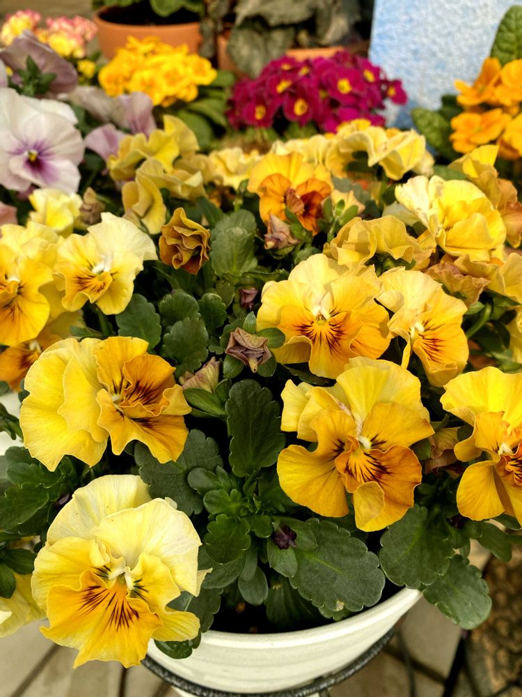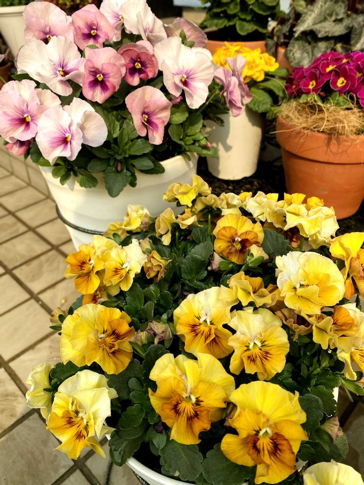 ミルフルアンティーク🌼と、小輪パンジーわらく🌸並べておくとめちゃかわいい🥰