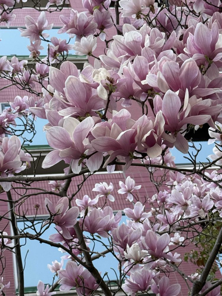 モクレンかな😊。こちらでもチラホラ咲いてるけど見入ってしまうよね😄。やっと花見できる季節がやってきました!🤣