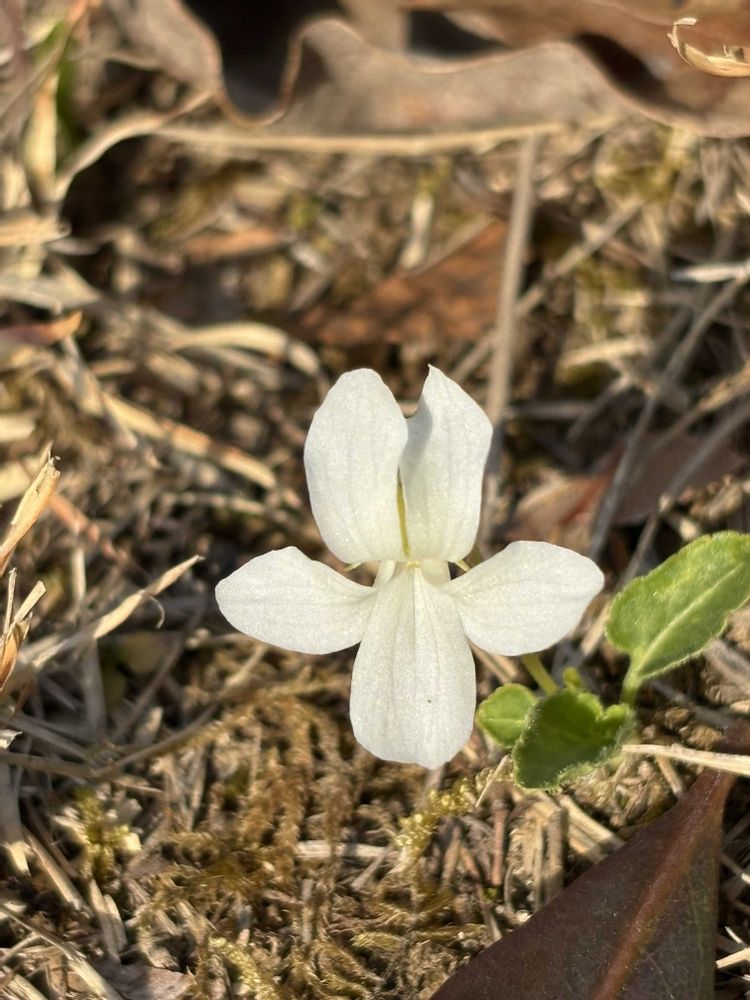 遠くから見た時、タチツボスミレが日に当たって白く見えてるのかと思ったけど、近くで見たら真っ白でした。