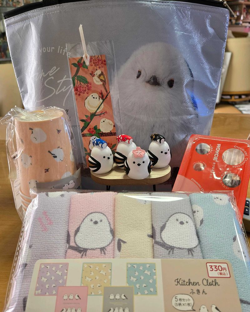 シマエナガ紙コップ、布おしぼりロイズのチョコ🍫 シマエナガの栞 保冷エコバッグ