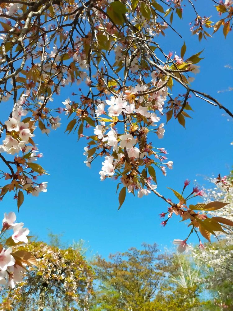 綺麗な空と白ぽい桜