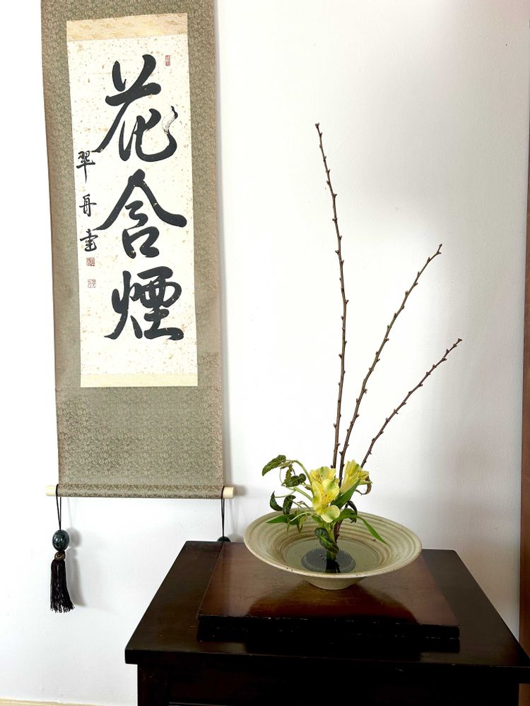 ふと掛け軸の文字が気になりました。三文字を組み合わせて検索しても出てきません。教えていただけませんでしょうか?また、筆はご自身でしょうか☺️