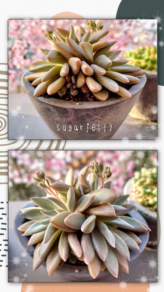 お疲れさまです( ^-^)_旦””今日も元気に頑張ったのでしょうね😆👍シュガーゼリーと言う多肉さん💚なんだか美人さんで素敵ですね😍これからスクスクと育ちますね😉🌱✨