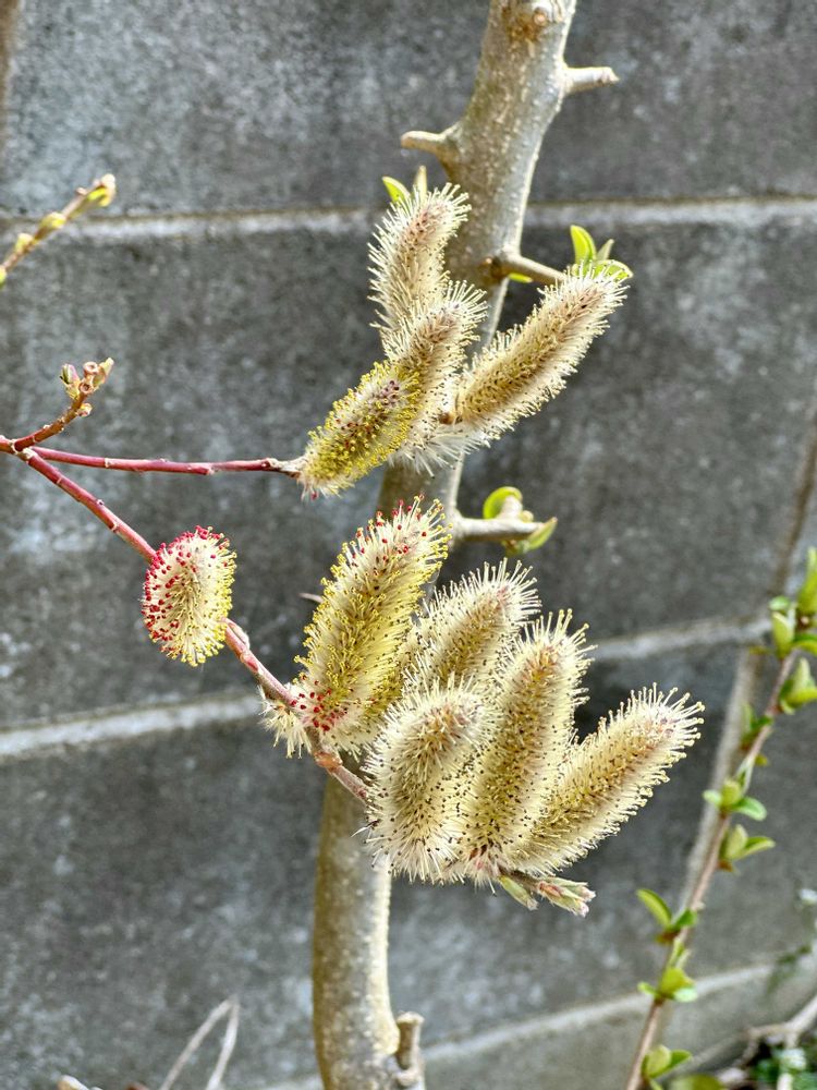 庭のすみっこでネコヤナギが万歳してました🙌 可愛い♡