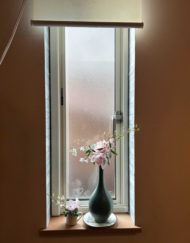 花器とのバランス、色もとてもいい感じですね♪黒を使うと強すぎに見えることもありますが、艶消しだと柔らかい雰囲気に仕上がりますね。