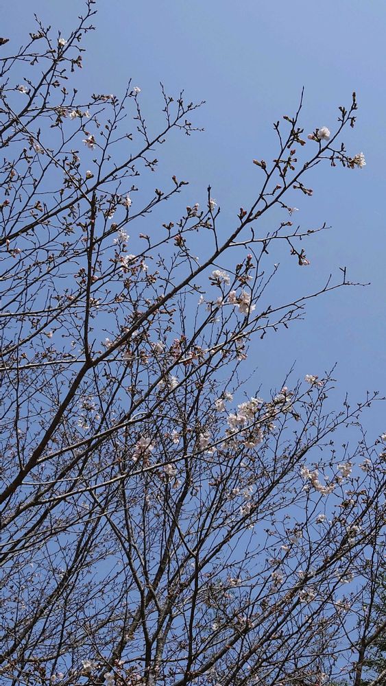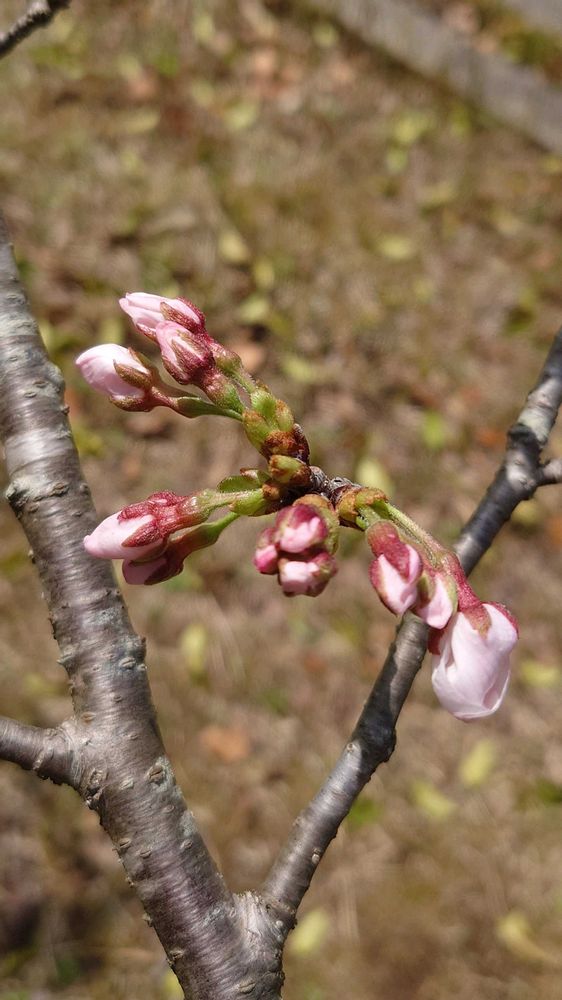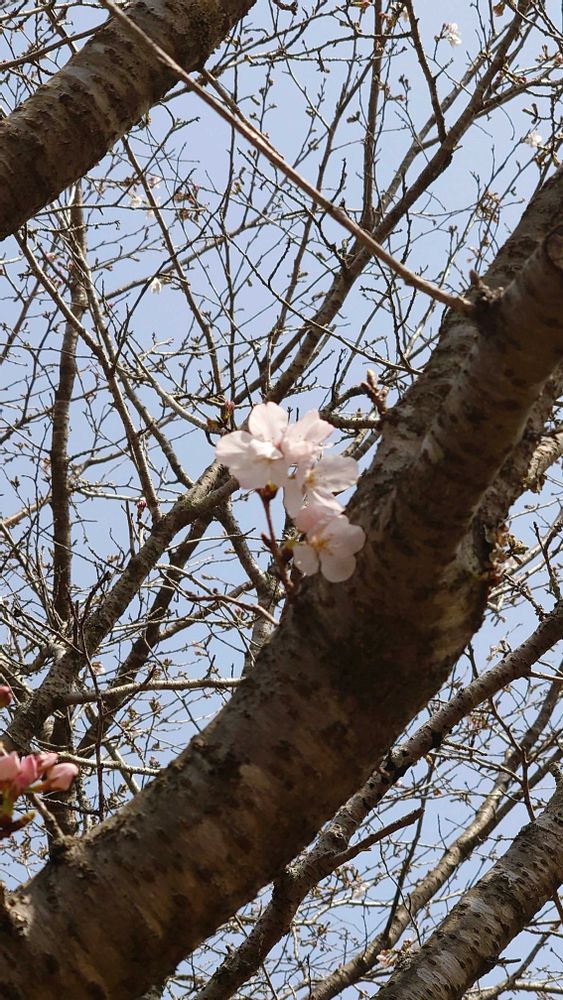 開花の観察している通勤途中の桜の木🌸🌳🌸数日前からチラホラ咲いてます。
