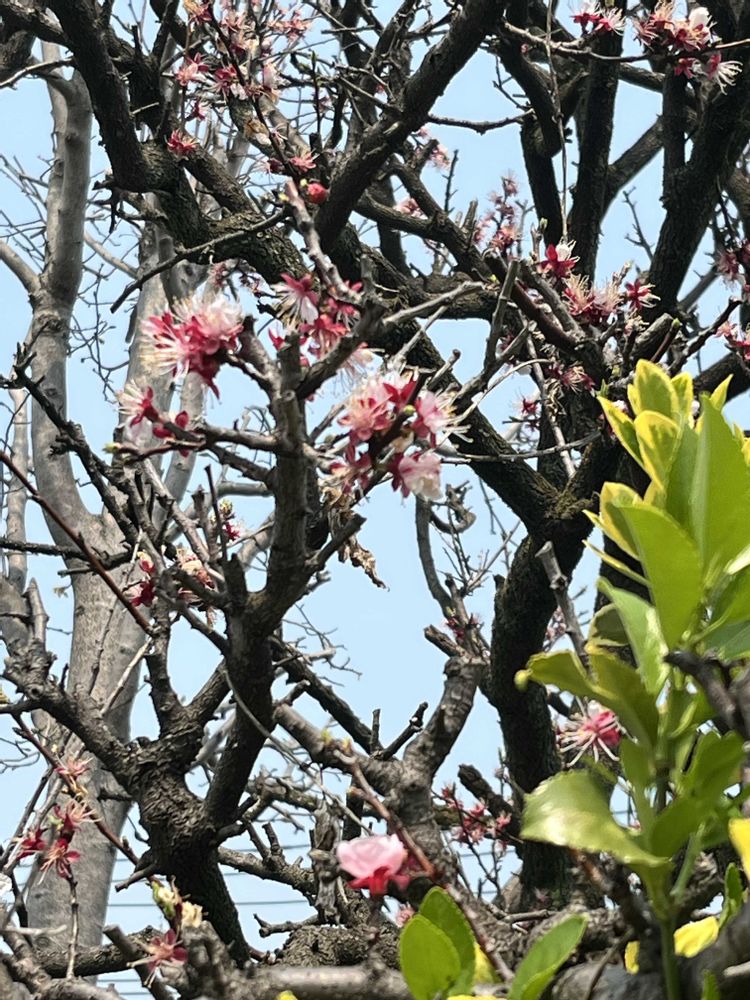 3.昨日 昼の散歩道に杏の花が咲いていましたよ🌸🍊