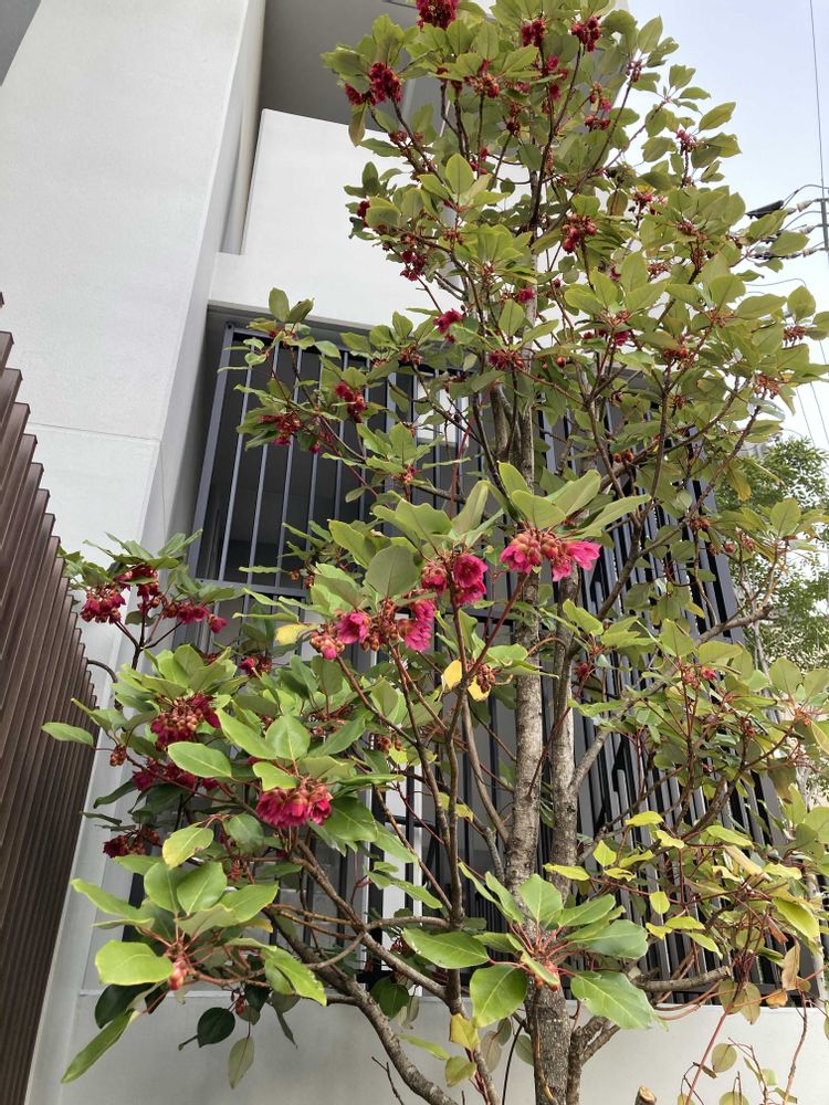 去年商店街の更地に建ったマンションの庭の植栽の花ロドレイアです。