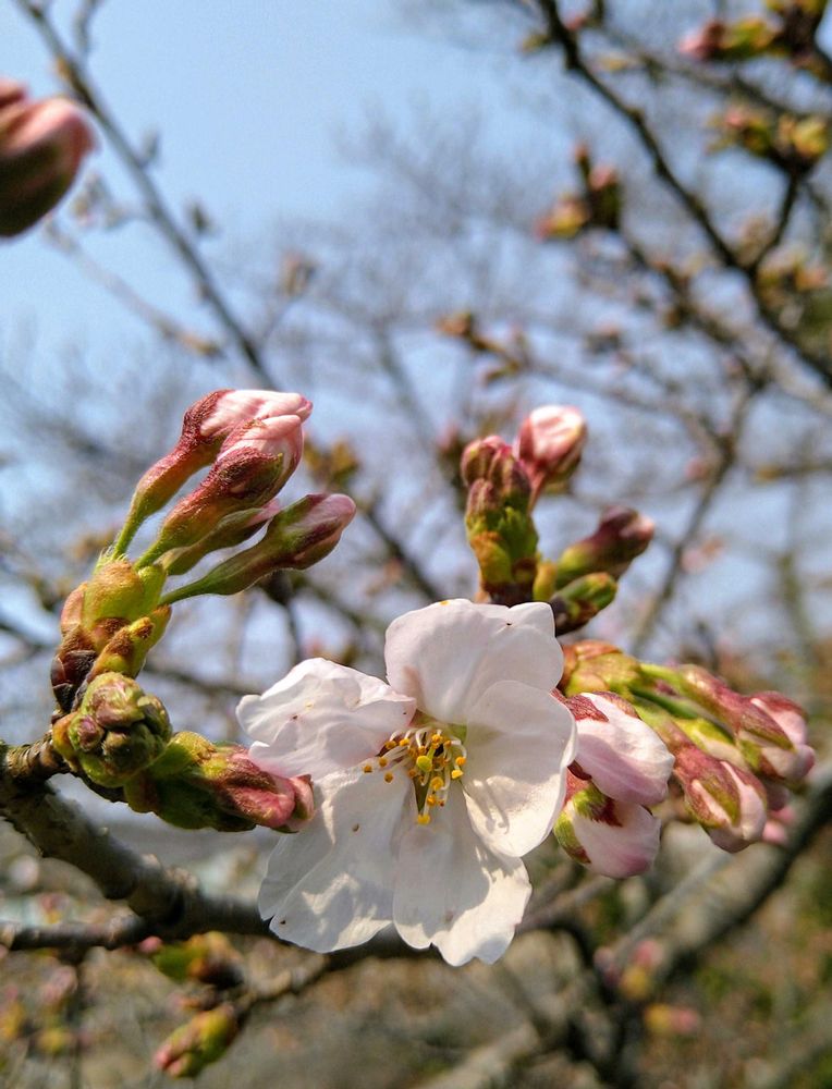 昨日の通勤帰りソメイヨシノが、ついに1輪咲き始めていました🌸🎶