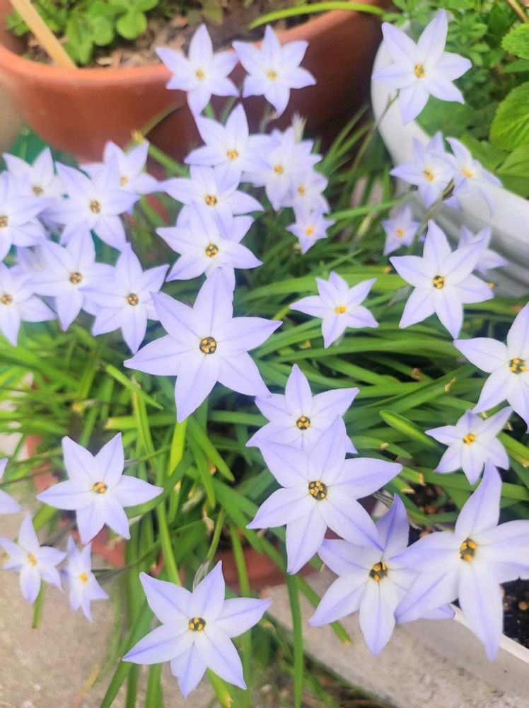 ハナニラが好きで、あちこちにハナニラの球根が混ざります𖤣𖥧𖥣。𖥧𖧧花が終わったらひとつに大鉢にしようかな-𓂃𓂂ꕤ*.゚