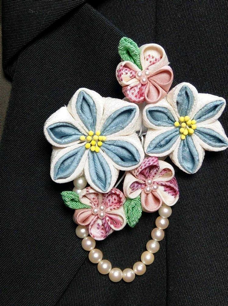 💚 ̖́-ハナニラと桜のブローチです!(* つまみ細工)☆