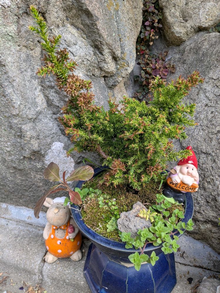 そして杉の盆栽、小さな盆栽ケヤキと長寿正月用盆栽のコラボです📸!!