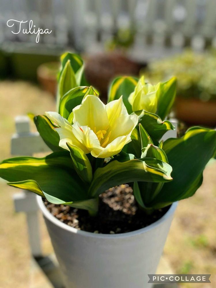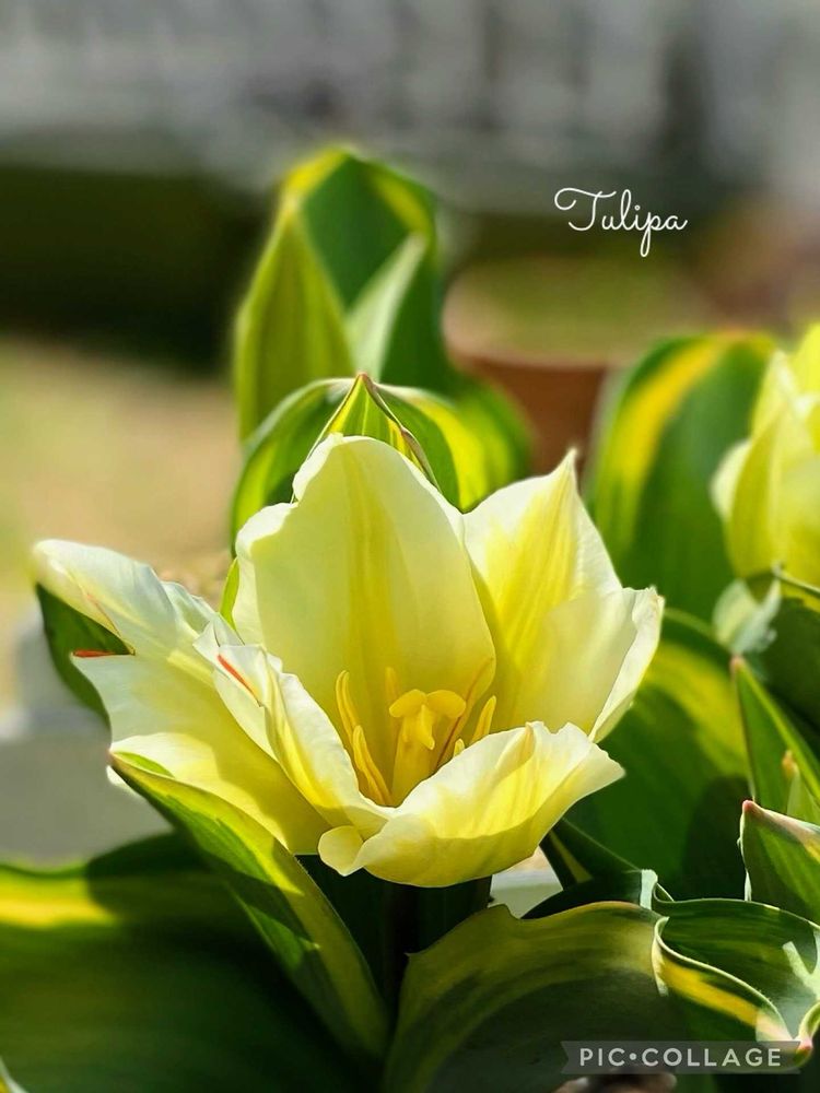 優しい花色が可愛いチューリップですね✨斑入りの葉も素敵(♡︎ˊ艸ˋ♡︎)